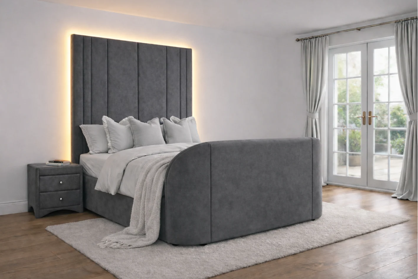 Salisbury Ottoman TV Bed in Grey Velvet